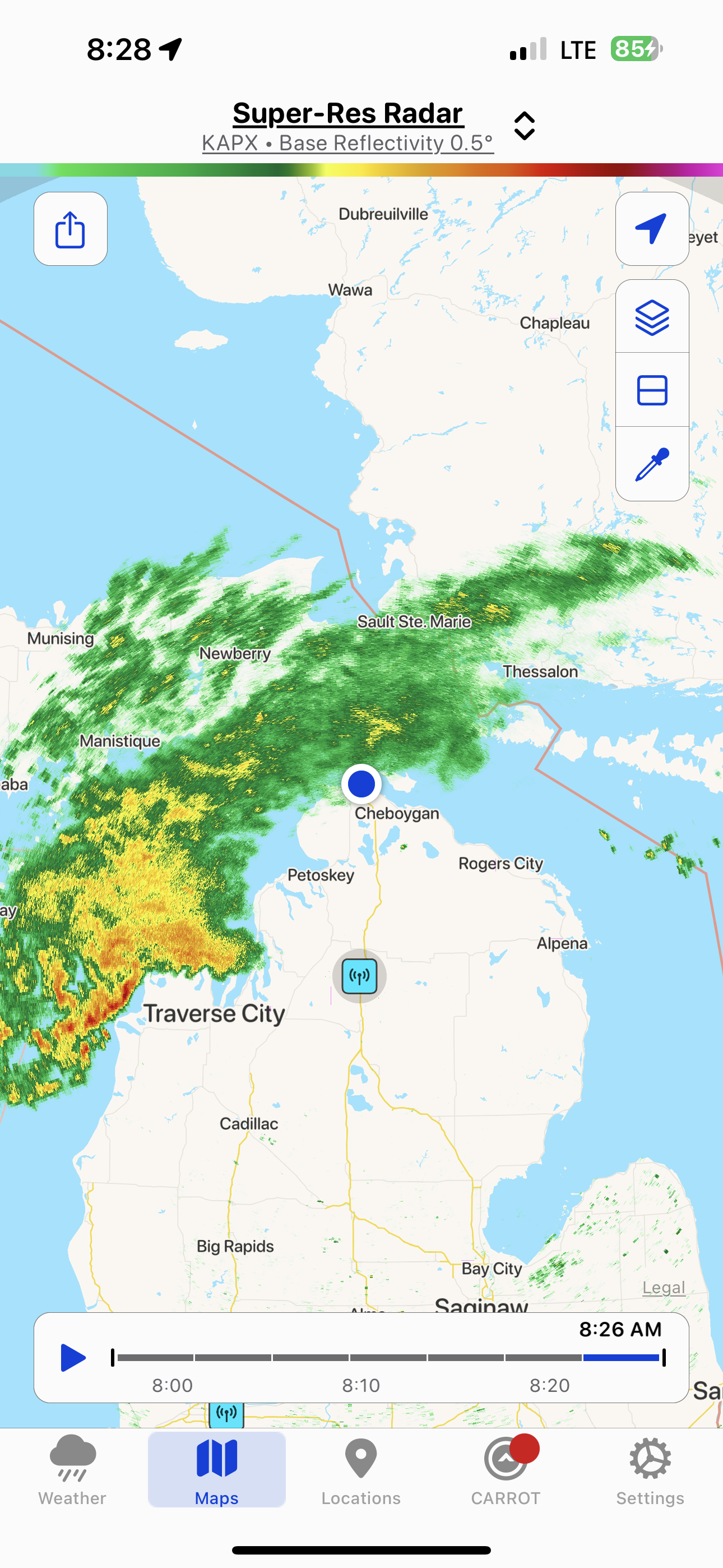 After leaving Mackinac Island, I don't travel far. I stay in the Northwind Motel, a motor hotel (motel) that looks like it was built in the 1920s. It probably was. It is the cheapest place I have paid to stay so far. It's small, made entirely of wood, but it is right on the lake. When I wake up I check the weather map and realize heading to Traverse City is not going to work.
