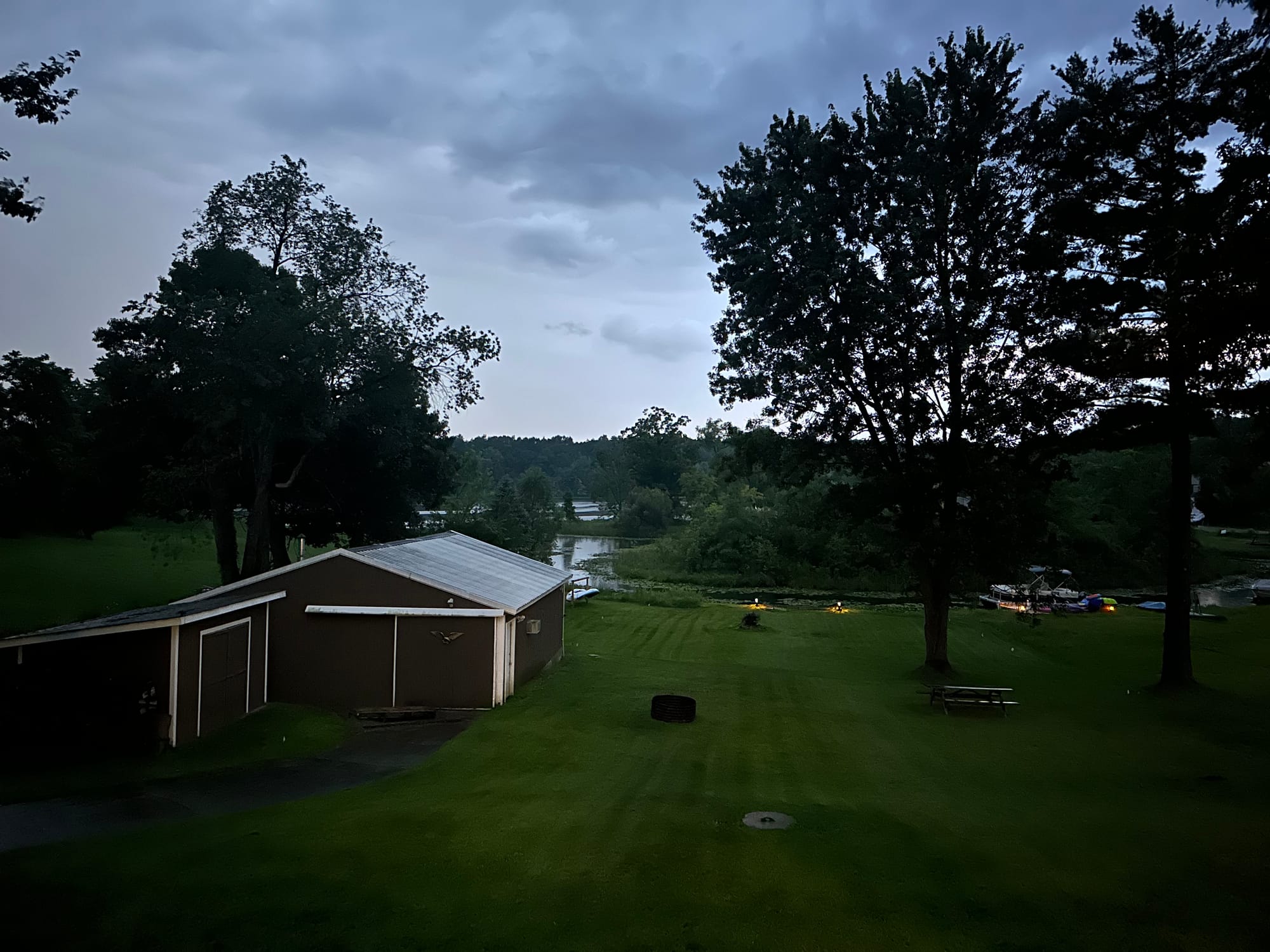 We spend the rest of the evening just sitting on their back porch staring at the lake as the sun goes down. They generously emptied out their garage to make room for my bike and I pull in just before the rain starts again for the night.