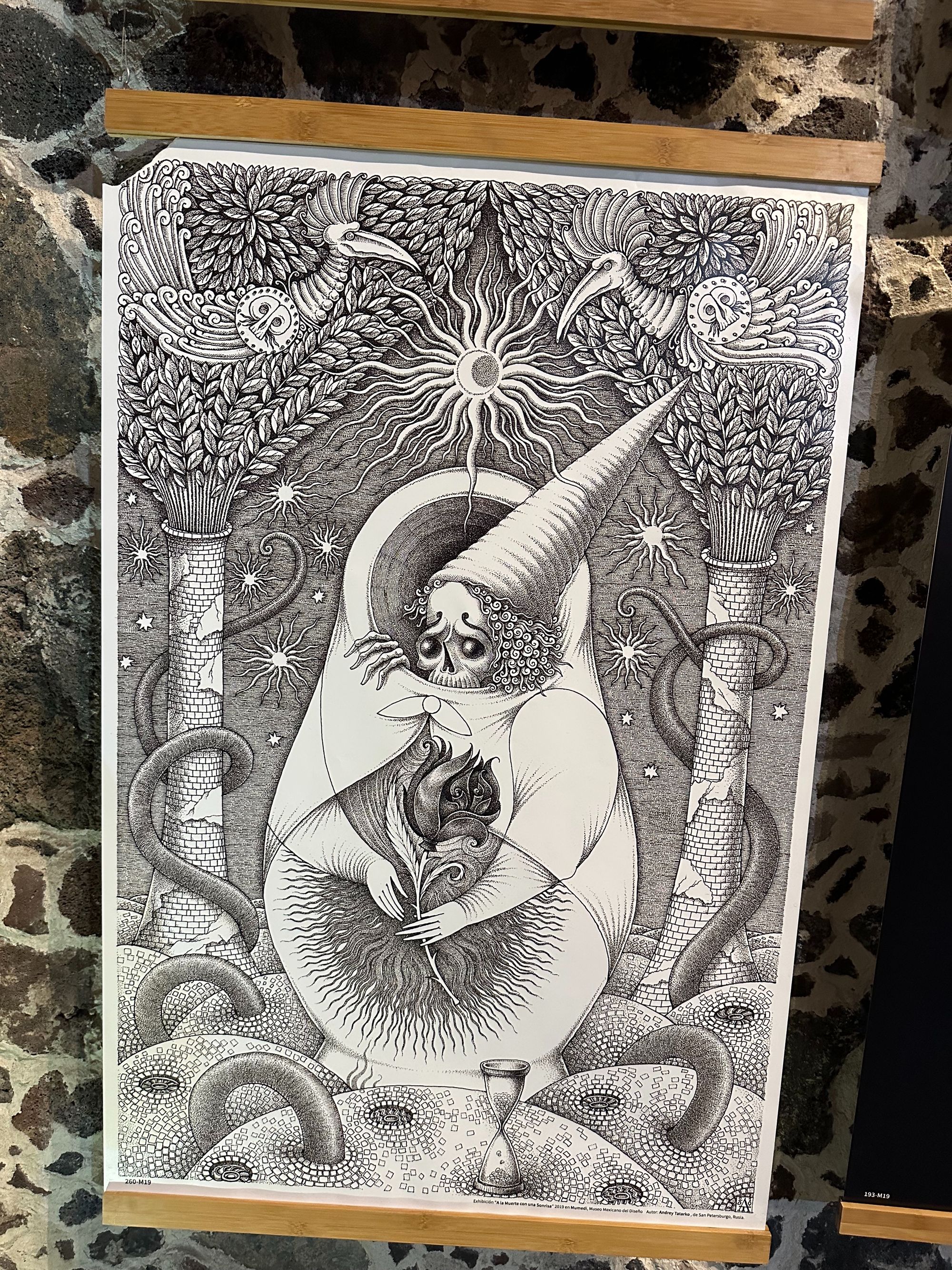 When we finally got to the museum, it turned out it was a modern art museum that held a contest every few years until Covid. Artists from all around the world submitted posters around the idea of a smiling death. The display is held in an ancient building turned into a hotel. The guide speaks only Spanish, and for my tastes she talked FAST. I understood about half of what she said. But most of the artwork was amazing. It varied from the simple, to the advanced. Clearly some people put a lot of work into their posters.
