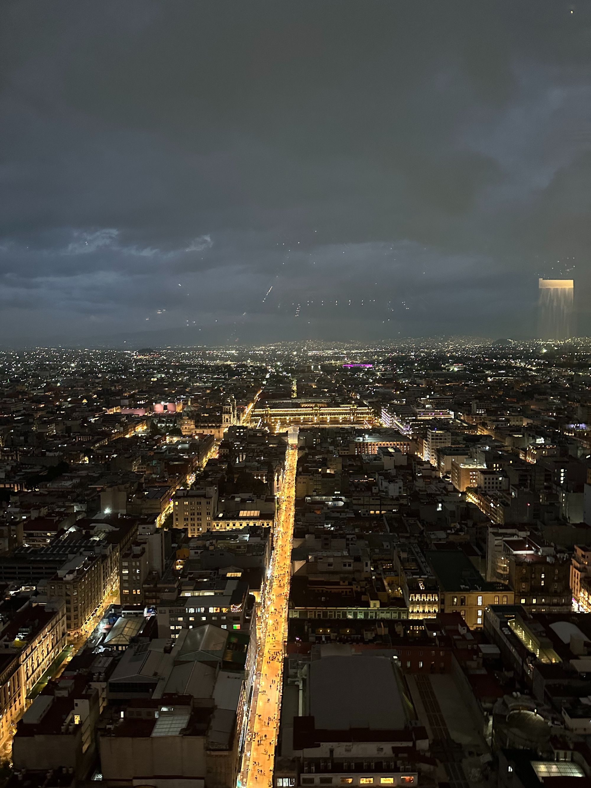 It is hard to believe how much traffic was just on that one street and how bright it was. But Mexico City is also beautiful at night. This view is looking toward the Presidents Palace and the Main Cathedral.
